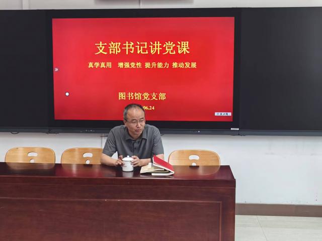支部书记刘文以“真学真用增强党性 提升能力推动发展”为题为支部全体党员讲专题党课。他要求全体党员要结合线上线下、集中学习和个人自学,系统学习党的历史、理论、方针政策,学习教育理论和我校相关制度,学习图书馆业务知识,不断增强党性修养,提升业务能力。他客观分析了我校图书馆在发展过程中的困难和问题、机遇与挑战,提出了今后一个时期图书馆的发展思路和举措,要重点在文献资源建设、馆员自身建设、读者服务、阅读推广、空间建设、信息化智慧化建设等方面发力。他要求全体党员要充分发挥带头作用,学思践悟,立足本职岗位,以问题为导向,勇于克服困难,不断更新观念,创新方法、扎实工作、推动发展。