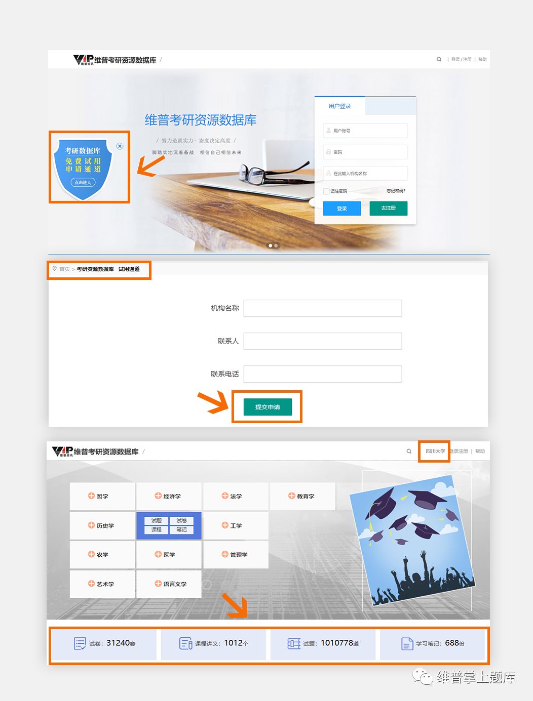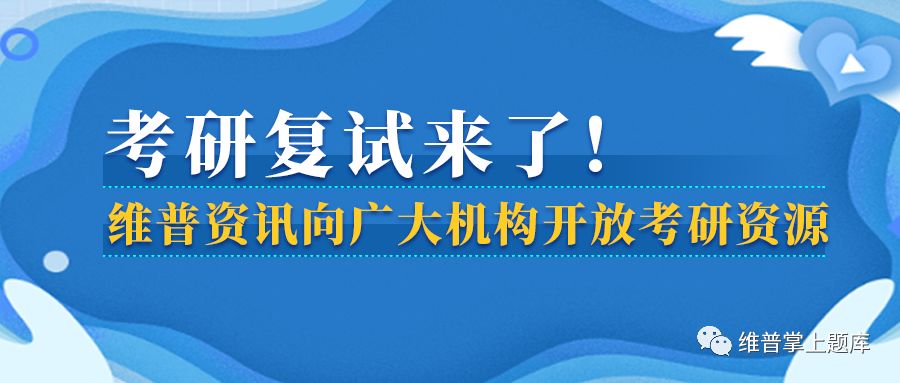 近日,部分省市已公布了2020年研究生入学初试成绩,考研复试真的要来了!为了方便广大考生们宅在家里也能安心备考,维普资讯将在此次复试备考期间,向全国高校、公共图书馆等机构单位免费提供考研资源数据库不限IP地址的使用权限,为考生们提供考研全过程的复习资料,包括课程讲义、学习笔记、各高校专业课真题等等。欢迎广大机构单位通过我们的绿色通道,申请免费试用!