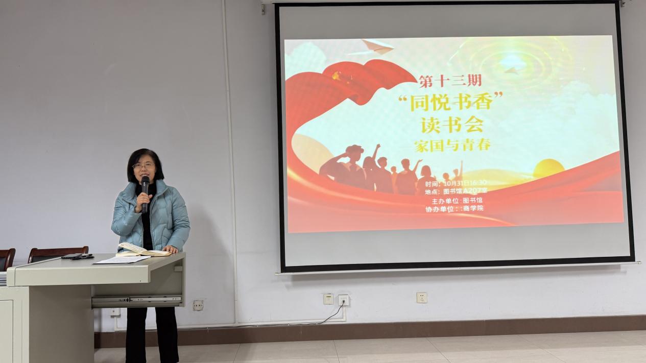 10月31日,第十三期“同悦书香”读书交流会在图书馆顺利举行。本期读书交流会由图书馆和商学院共同组织举办,商学院党委副书记姚占魁和徐苗老师、图书馆副馆长谷彦和冀启源老师以及80多名热爱阅读的同学们参与。