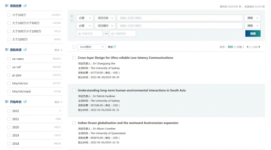 2、众多科研项目囊助掌握研究全貌:支持同一项目全部研究成果的关联聚合,揭示科研项目的技术研究过程、方法描述、结果分析、技术性文件和记录、结果或进展总结等科研成果记录,进一步掌握项目整体研究全貌。