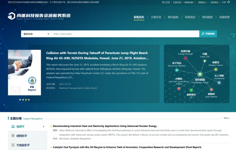 《尚唯科技报告资源服务系统》主要收录国外科技报告,为用户提供科技报告这一特种文献的一站式检索查询、原文传递以及信息挖掘服务。
