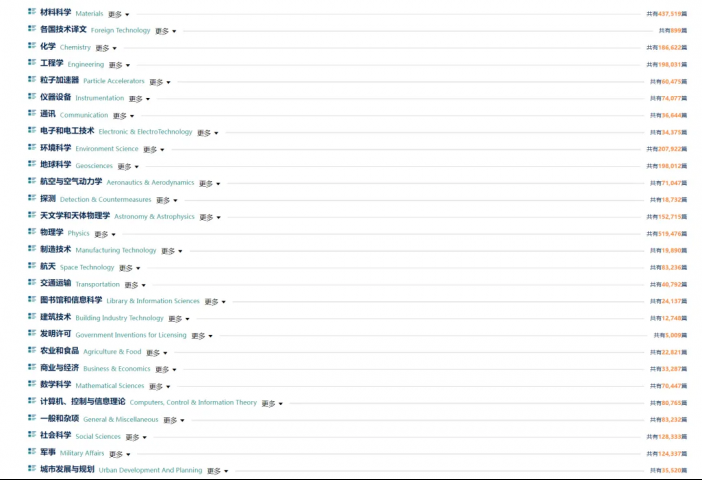 1、全新分类体系辅助文献查找:构建贴合科技报告的主题分类体系,涵盖32个一级主题,向下分为347个二级分类,707个三级分类,基本囊括主要学科领域,便于根据主题知识系统,按类检索、查找文献。